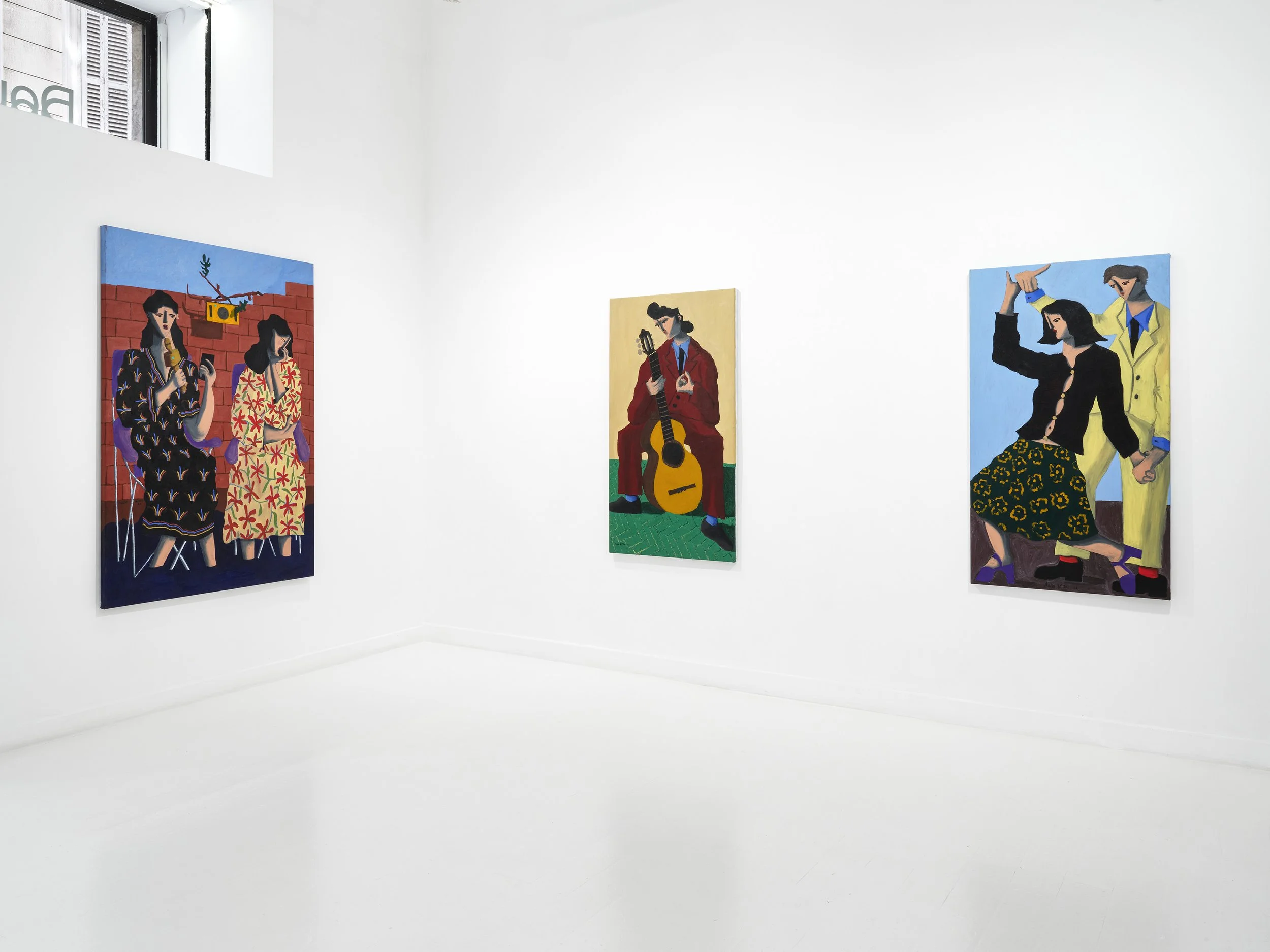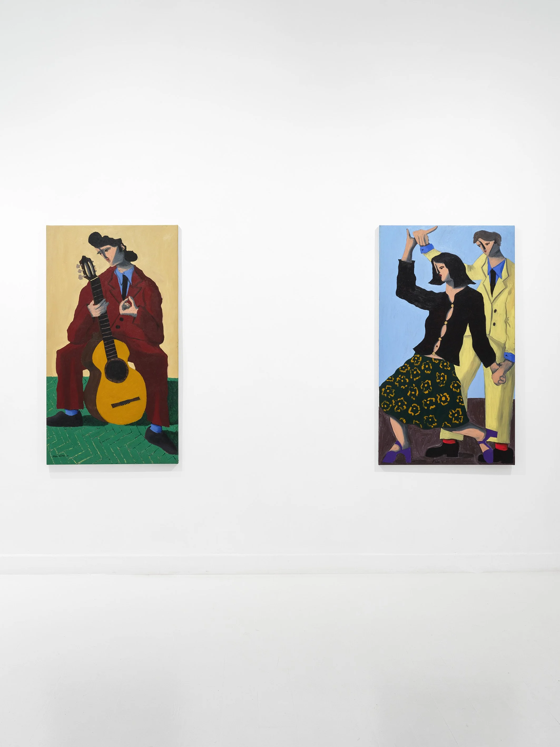 With The Air of Cadences, Arsène Welkin presents a new series in which painting becomes a space for the expression of bodies, rhythms, and surrendering oneself. When territory becomes uncertain, music acts as an anchor. Movements become free, necessary, escaping the weight of the world. Figures in tension or suspension, inhabited gestures, intense gazes—music here becomes a visible material, flowing through every body with a profound vitality.